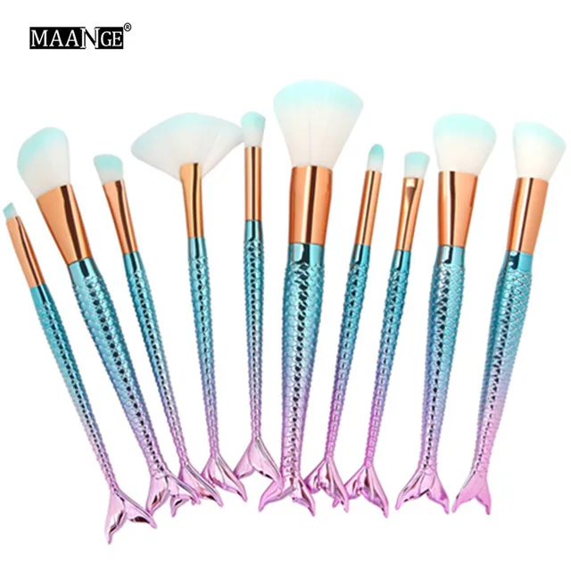 Get yourself this charming set of makeup brushes by bead landing. 10 pcs mermaid tail make up brushes set rainbow foundation blusher face powder see more like this. The soft bristles of these brushes ensure a smooth and even makeup coverage in a single swipe. Featuring a beautiful mermaid tail these blush brushes are all you need to turn into a diva for a party or fun outing.