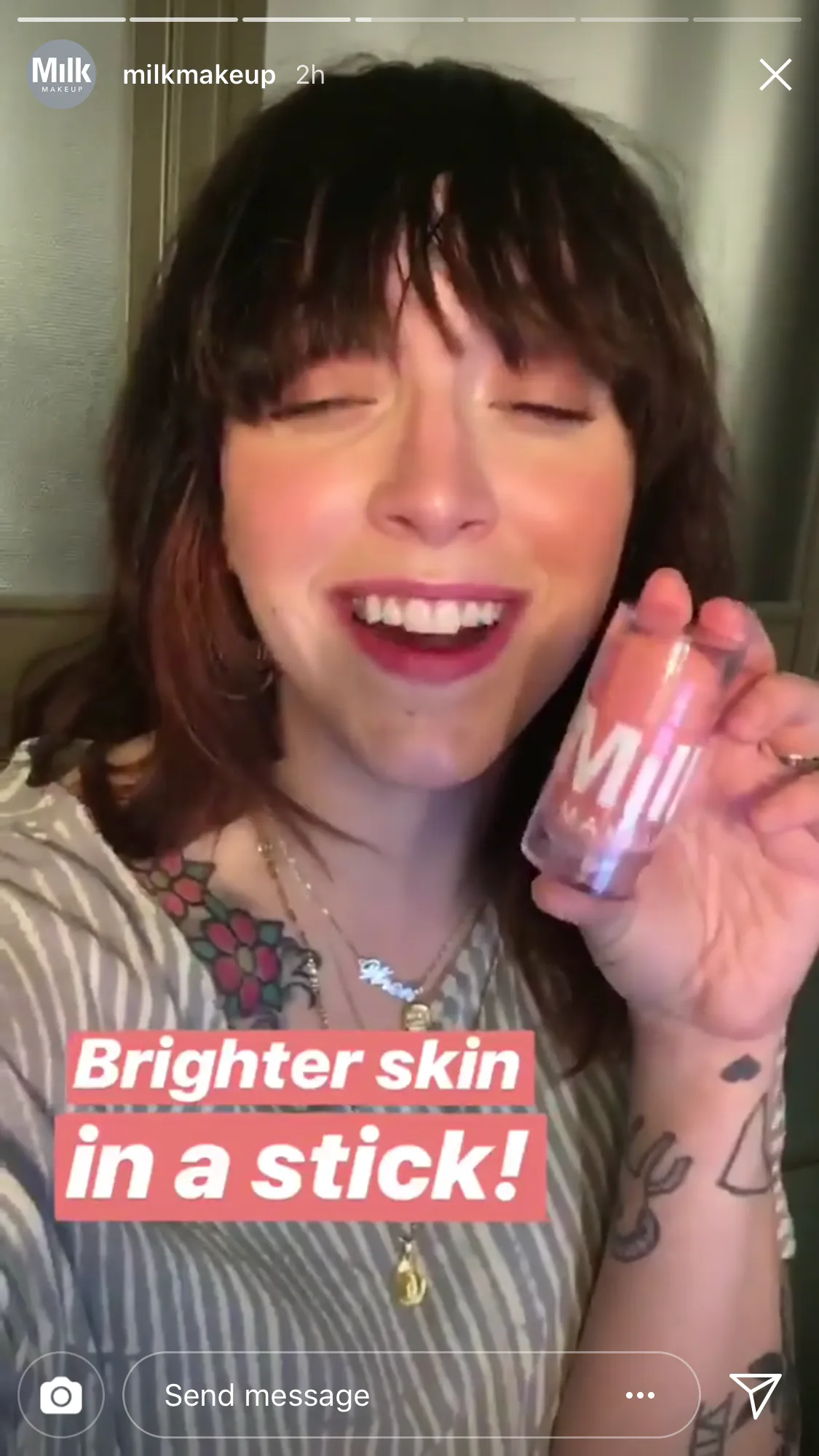 At milk makeup we believe its not just about how you create your look. Matrixyl a biomimetic peptide complex. Brighter skin in a stick. Apparently it diminishes the look of dark spots as well as smooths skin with peptide complex.