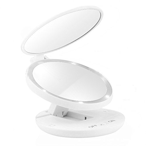 Floxite Compact Mini Vanity Mirror Magnifies 10x With Led Lights