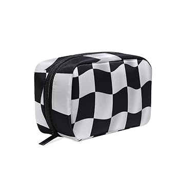 Amazon Com Portable Organizer Makeup Bag Checkered Flag Cosmetic