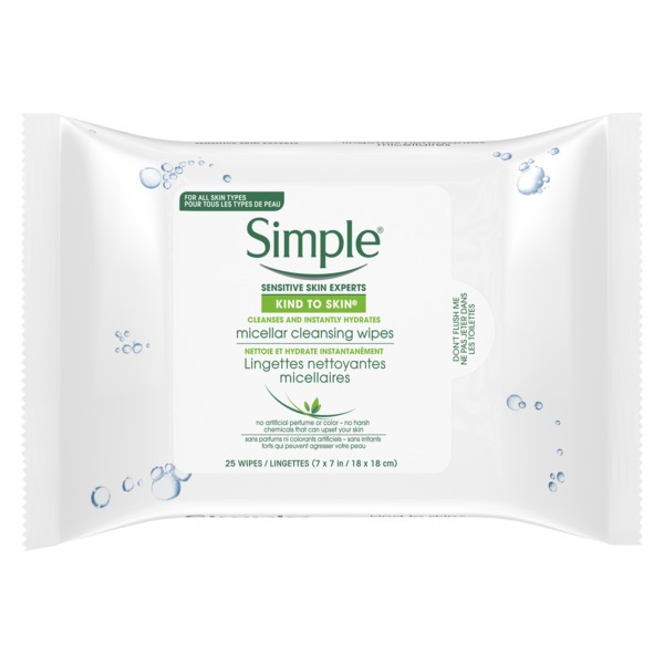 Simple Micellar Facial Wipes Makeup Remover Face Cloths 25 Ct