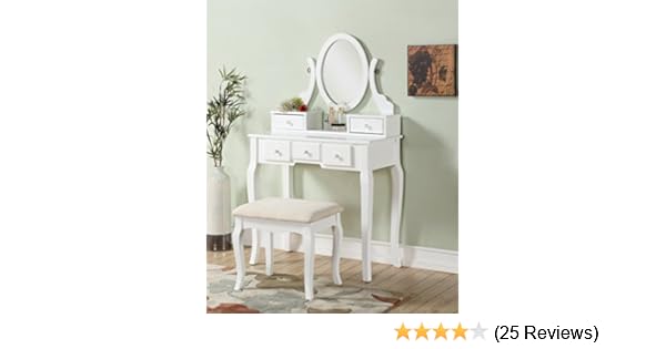 Amazon Com Lazymoon Wood Makeup Vanity Table Set W Oval Mirror And