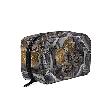 Amazon Com Cosmetic Bag Dollar Currency And Bitcoin Flying Makeup