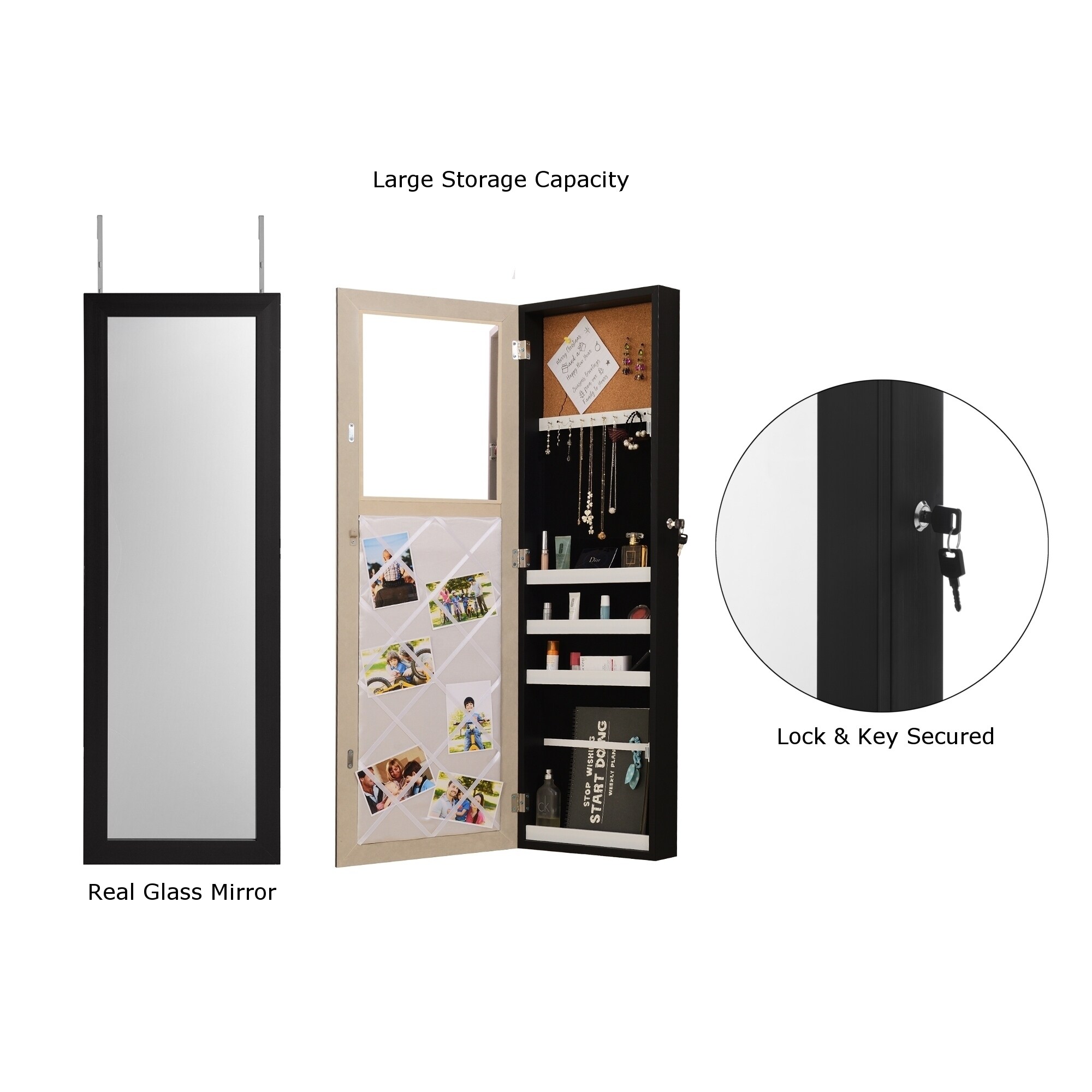 Jewelry Cabinet Makeup Organizer Over Door Wall Mount Storage Mirror