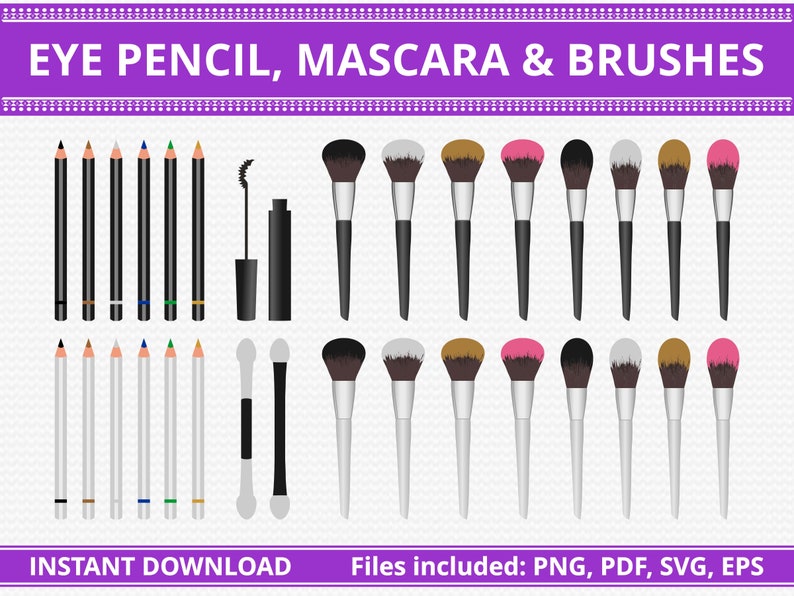 Eye Pencil Brush Mascara Clipart 32 Commercial Use Etsy