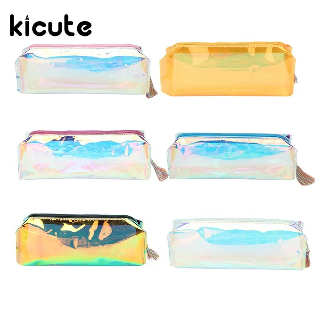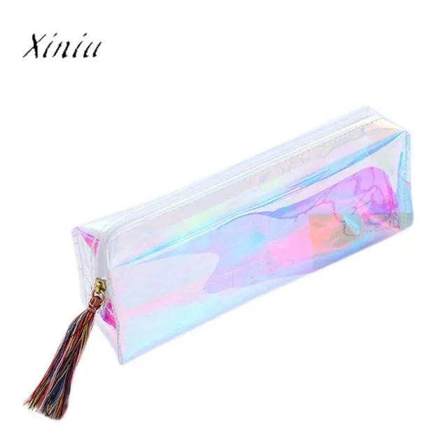 Women Colorful Laser Transparent Pencil Case Cosmetic Bag Makeup