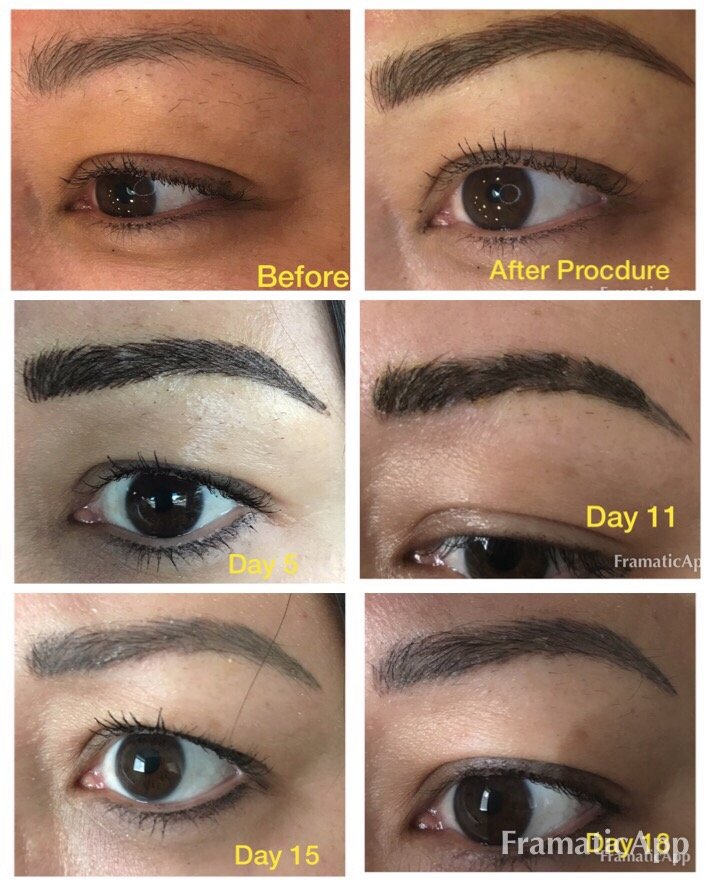Avoid washing permanent eyebrows with soaps facial cleansers or plain water for 5 days. Any cases of swelling and bruising are usually minimal. Permanent cosmetics semi permanent makeup and micro pigmentation are all terms used to describe a form of cosmetic tattooing which replicates perfectly applied makeup. Here we will explain those factors and show you what to expect during all the stages of the tattoo eyebrows healing process to help you recover as quickly and successfully as possible.