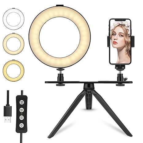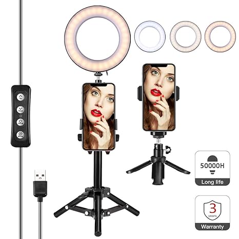 Mini 6 Inch Dimmable Ring Light Led Desktop Lamp With Cell Phone