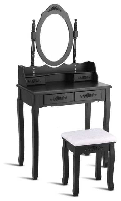 Costway Vanity Wood Makeup Dressing Table Set Bedroom Mirror 4