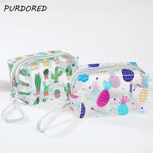 Us 3 47 27 Off Purdored 1 Pc Transparent Cosmetic Bag Pvc Travel Makeup Bag Cactus Flamingo Pineapple Toiletry Bag Neceser Dropshipping In Cosmetic