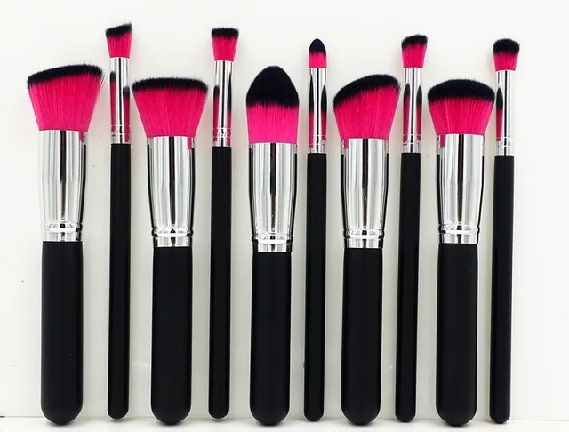10pcs Black Pink Synthetic Kabuki Makeup Brush Set Cosmetics