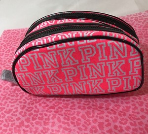 Victoria S Secret Pink Monogram Double Zipper Makeup Cosmetic Bag