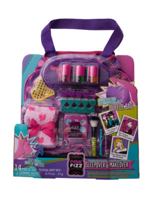 Pink fizz makeup set. Includes a pink fizz limited edition bucket 7 nail polishes nail file 2 toe seperators and nail stencils. This item pink fizz ultimate kids makeup traveling set. Pink fizz girls all in one mega glam beauty binder kids pretend make up non toxic and washable. By best accessory group.