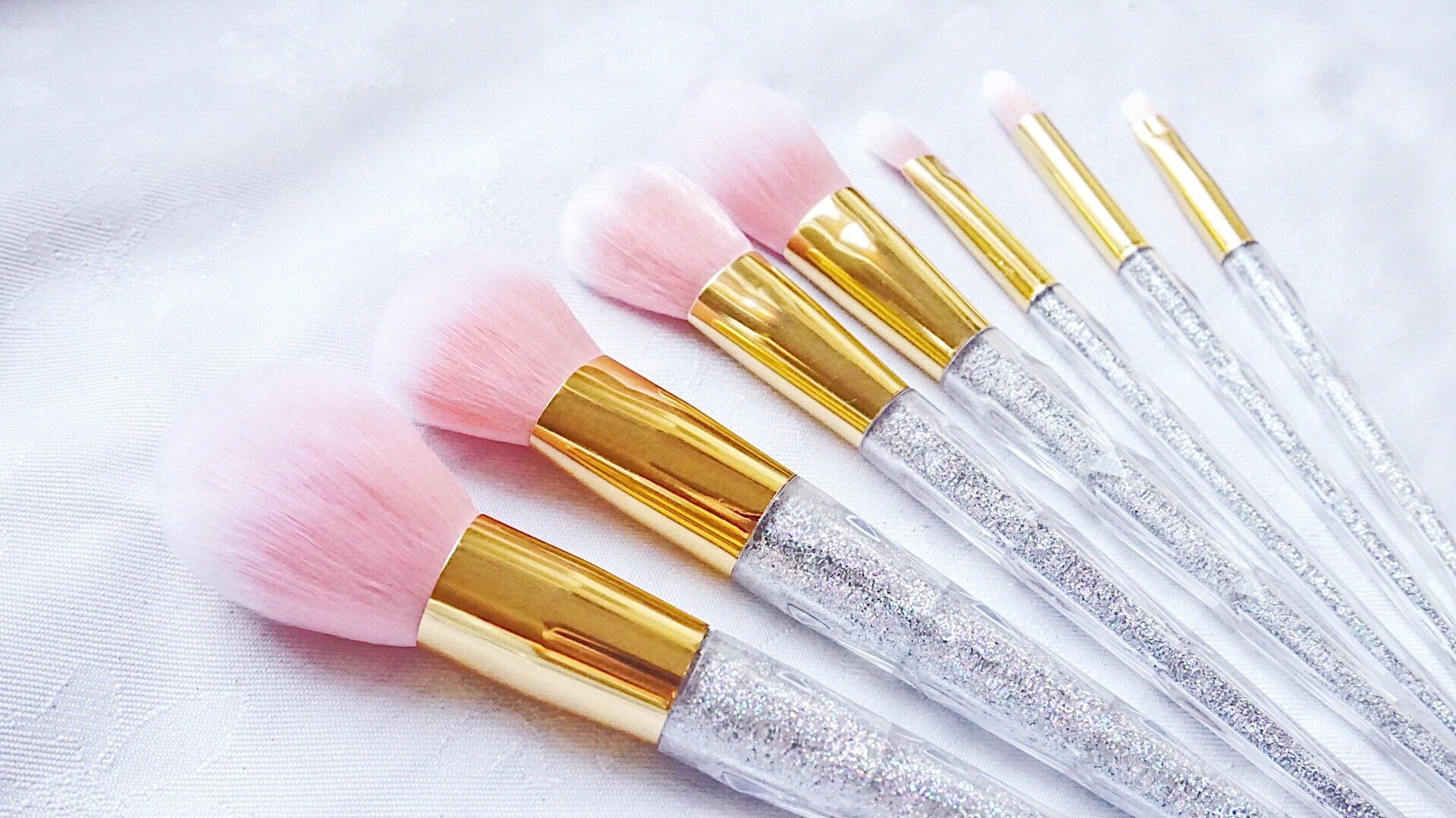 Crystal Glitter Makeup Brush Set In Pink Pearl 7 Pc Showpo