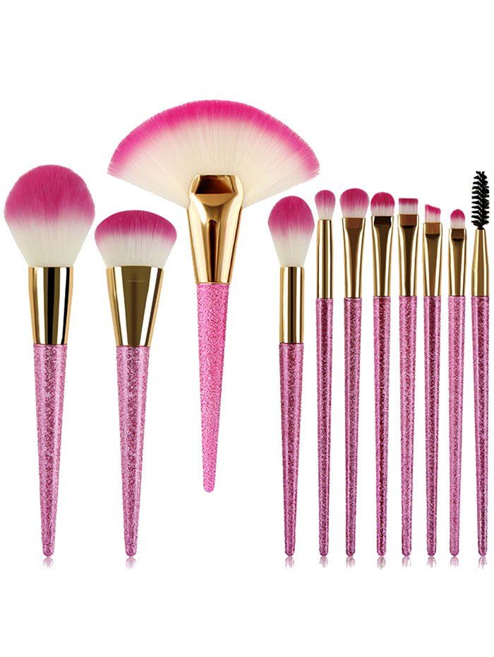 35 Off 11 Pcs Pink Handles Eyeshadow Blush Fan Eyebrow Brush Suit