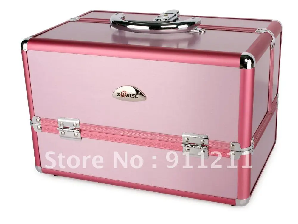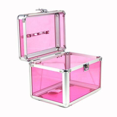 China Portable Pink Aluminum Acrylic Makeup Cosmetic Train Case On
