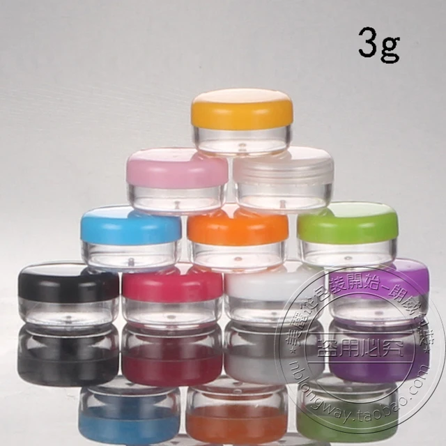 100pcs Lot 3g Cream Jars Multicolor Screw Caps Clear Plastic Makeup