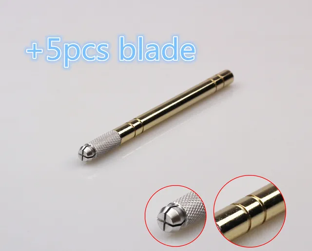 5pcs Free Blade Golden Manual Tattoo Pen Permanent Makeup Machine