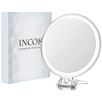 Liaboe 10x Magnifying Lighted Vanity Makeup Mirror With White Led Lights Portable Bathroom Mirror