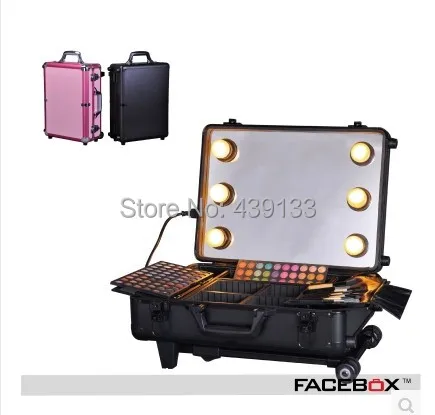 Professional Cosmetic Trolley Case With Lamp Makeup Case With