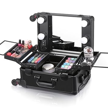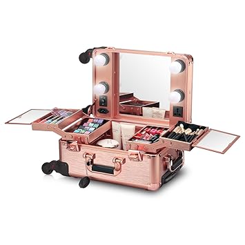 Ovonni Led Makeup Train Case Lighted Rolling Travel Portable