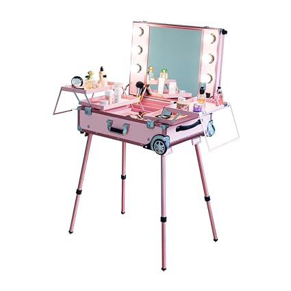 Ladymoss Com Pro Studio Lighted Makeup Case W Legs Rose Gold