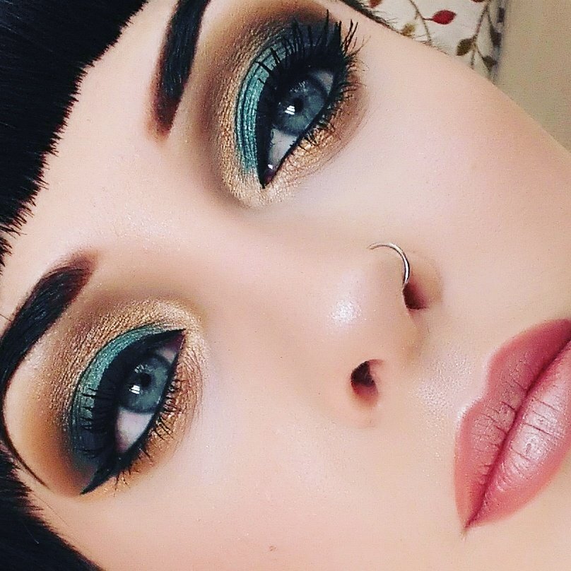 Mint And Gold Glitter Princess Jasmine Inspired Makeup For Halloween
