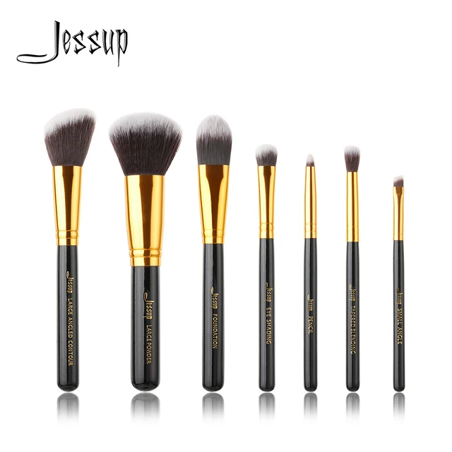 Jessup 7pcs Pro Makeup Brushestools Black Gold Beauty Make Up Brush