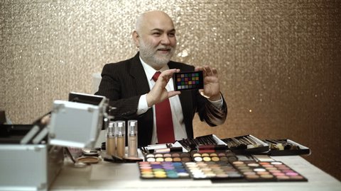 Professional Makeup Artist Showing Holding Stock Footage Video 100