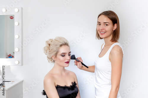 Professional Makeup Artist Applying Make Up On A Beautiful Young