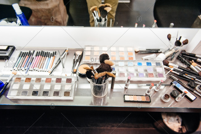 Cosmetics Tools Professional Makeup Artist Dressing Table Stock