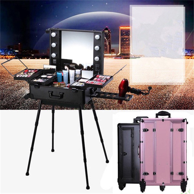 Rolling Studio Makeup Artist Cosmetic W Light Mirror Case Train