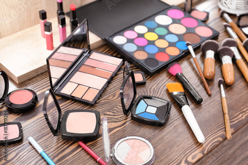 Professional Makeup Artist On The Table In The Studio Multicolored