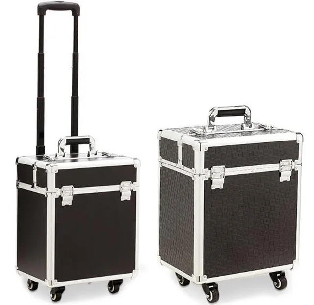Rolling Makeup Case Trolley 2 In 1 Travel Cosmetic Train Cases On Wheels Nylon Black Bags For Professional Make Up Artist Cosmetics Storage