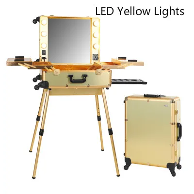 Gold Led Yellow Lights Professional Makeup Artist Station Box Makeup