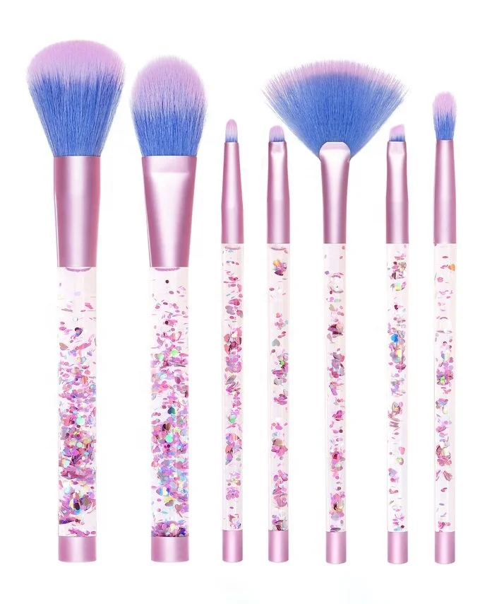Transparent Handle Glitter Makeup Brush 7pcs Cosmetic Brush Facial