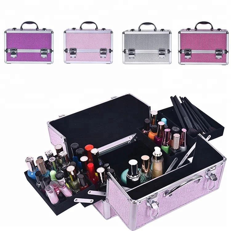 Us 96 0 4 Colors Aluminum Fashion Makeup Box Beauty Box With Inner Tray Makeup Train Case Large Capacity Nail Makeup Storage Box In Cosmetic Bags