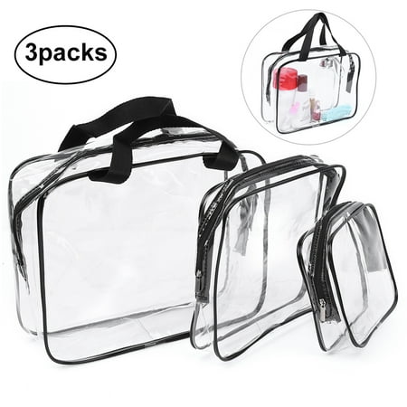 3 Pack Tsa Compliant Clear Black Pvc Makeup Case Cosmetic Bag
