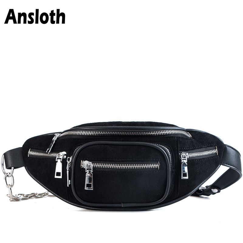 Ansloth Fashion Simple Women Waist Bags Scrub Pu Leather Travel Bag Casual Shoulder Bag For Woman S Vintage Chest Bags Hps318