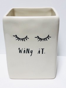 New Rae Dunn By Magenta Makeup Brush Holder Wing It Ivory Black Font