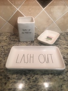 Rae Dunn Vanity Makeup Brush Holder Tray Lash Out Wake Up And