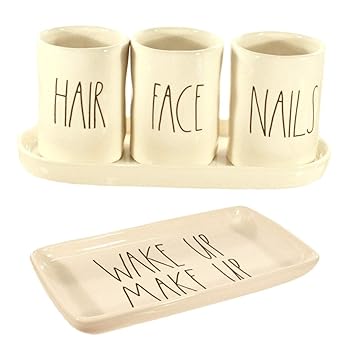 Amazon Com Rae Dunn Hair Face Nails Bathroom Brush Holders And Wake