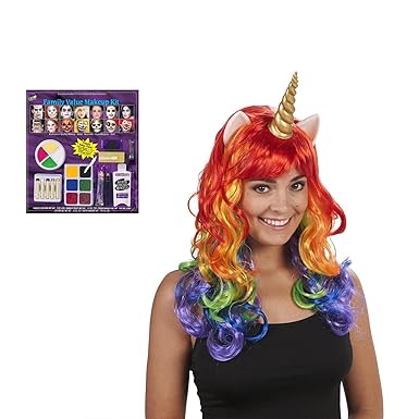 Amazon Com Rainbow Unicorn Adult Wig And Makeup Bundle Set Clothing
