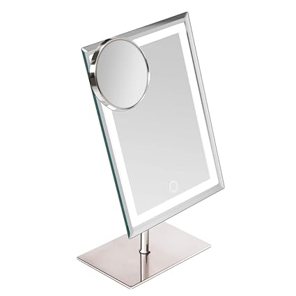 A wall mount makeup mirror made out of a wall mount makeup mirror made out of high quality brass with a chrome finish this single faced makeup mirror fits right into any contemporary style bathroom. Border illuminated led wall mirror silver. Shop all rugs featured sales new arrivals clearance. A basic pedestal mirror with just one light setting.