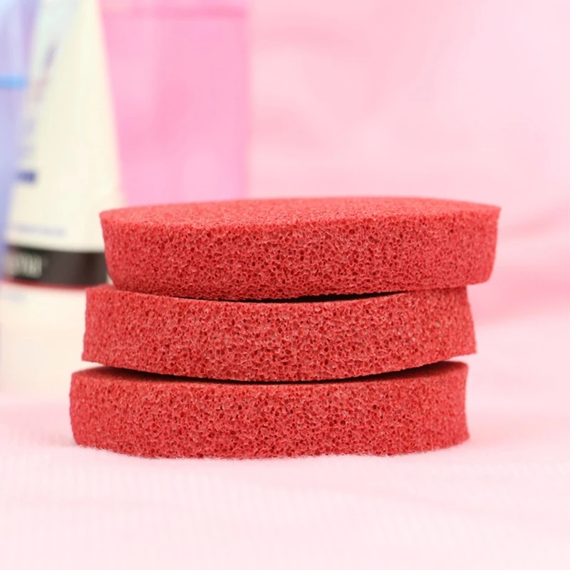 Top Grade Soft Rubber Cotton Round Red Face Wash Cleansing Sponge