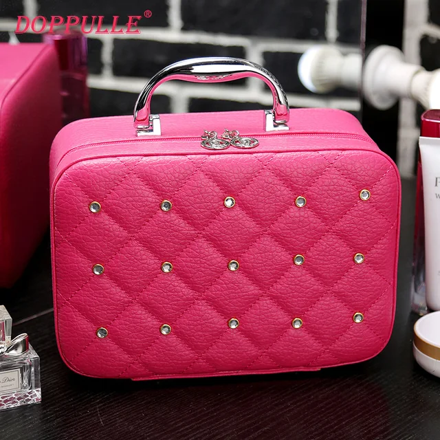Doppulle Luxury Women Bling Cosmetic Case Rivet Rhinestone Makeup