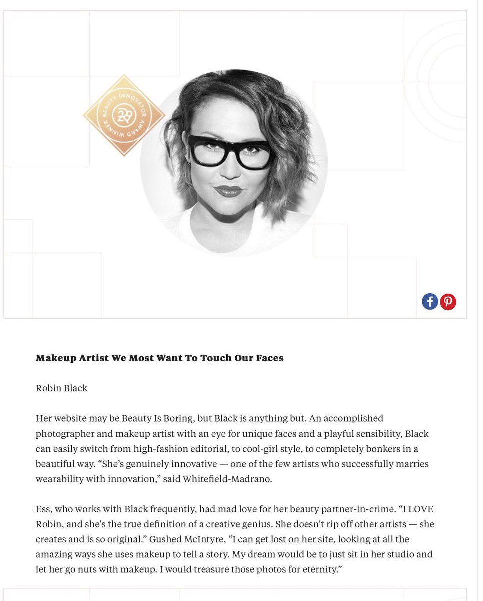 Beauty is boring is a beauty blog dedicated to showcasing gorgeous makeup looks on diverse models with unique stories and robin black is the creative mind behind it all. Founded by celebrity makeup artist and photographer robin black beauty is boring is a space for inspiration inclusivity and fun. Robin is a makeup artist photographer and creative director with her skills perfectly combining to make beauty is boring possible but she didn t always know she wanted a career in the beauty world. Definitely check it out.