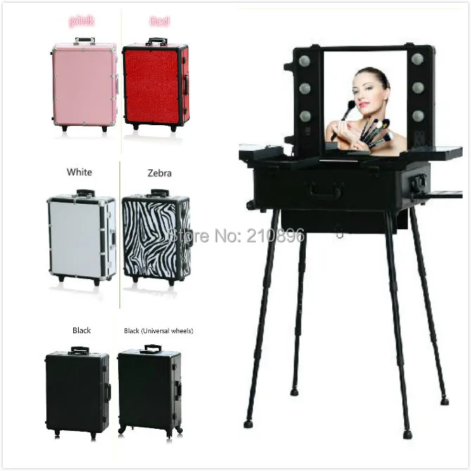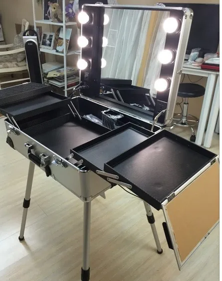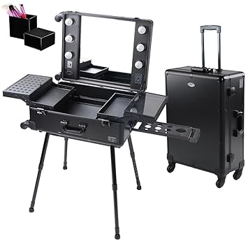 Yescomusa Aw Rolling Makeup Case With Bulb Adjustable Leg Mirror