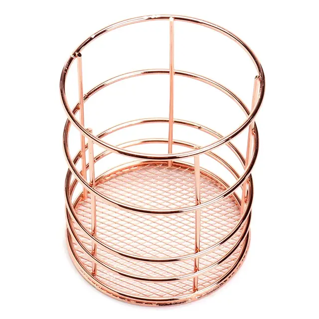 Copper Storage Basket Cosmetic Organizer Rose Gold Makeup Brushes
