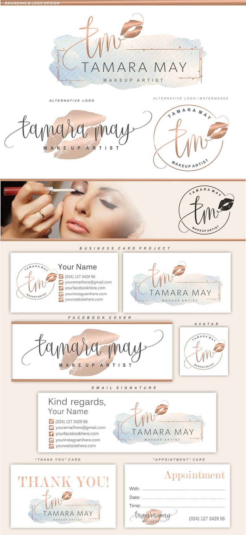 Premade Logos Branding Rose Gold Makeup Artist Itw Visions